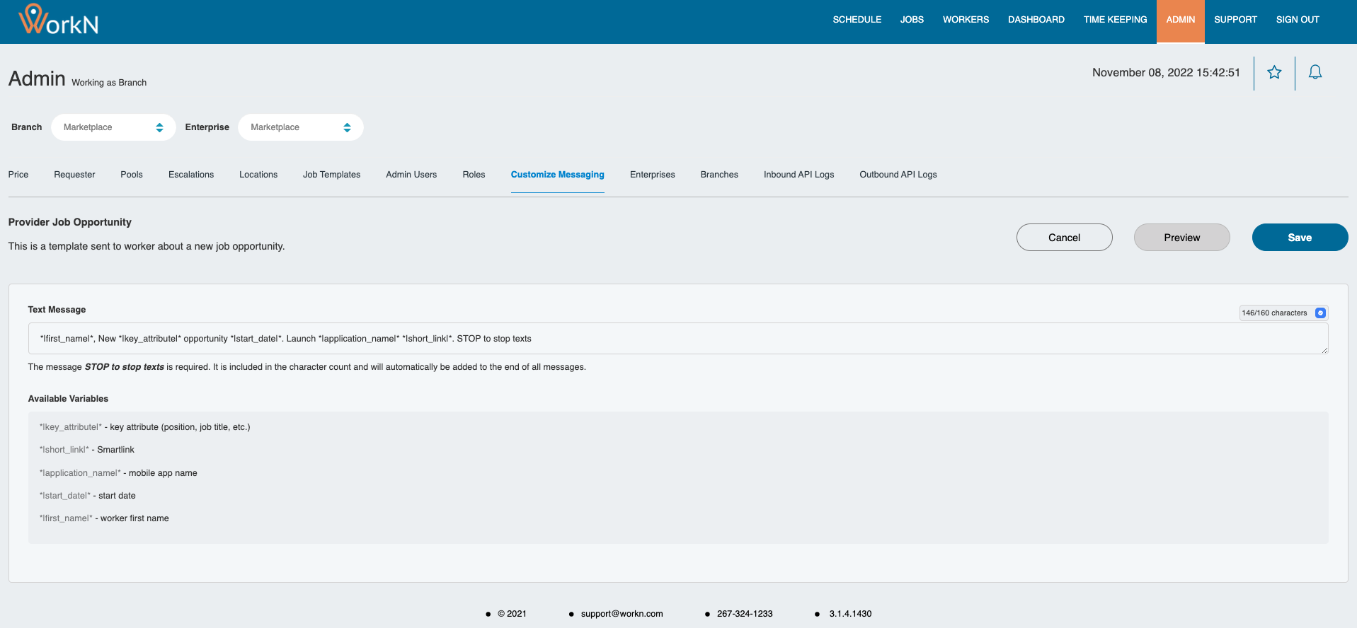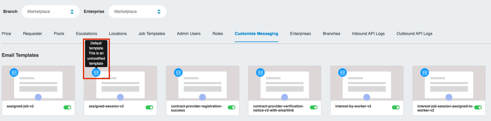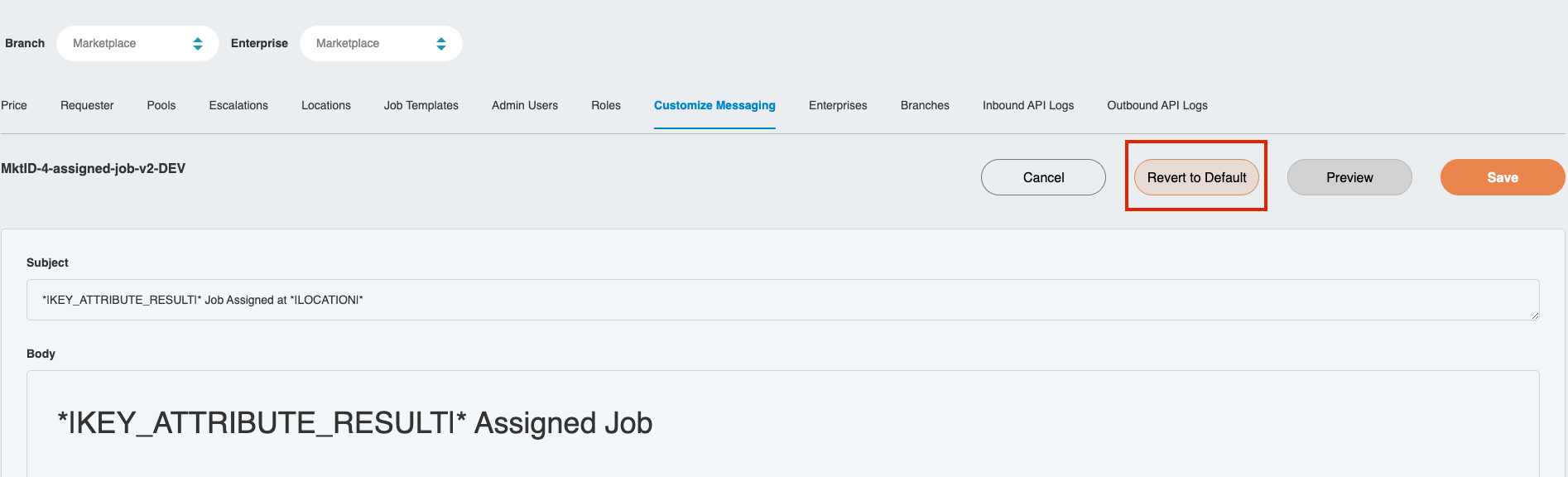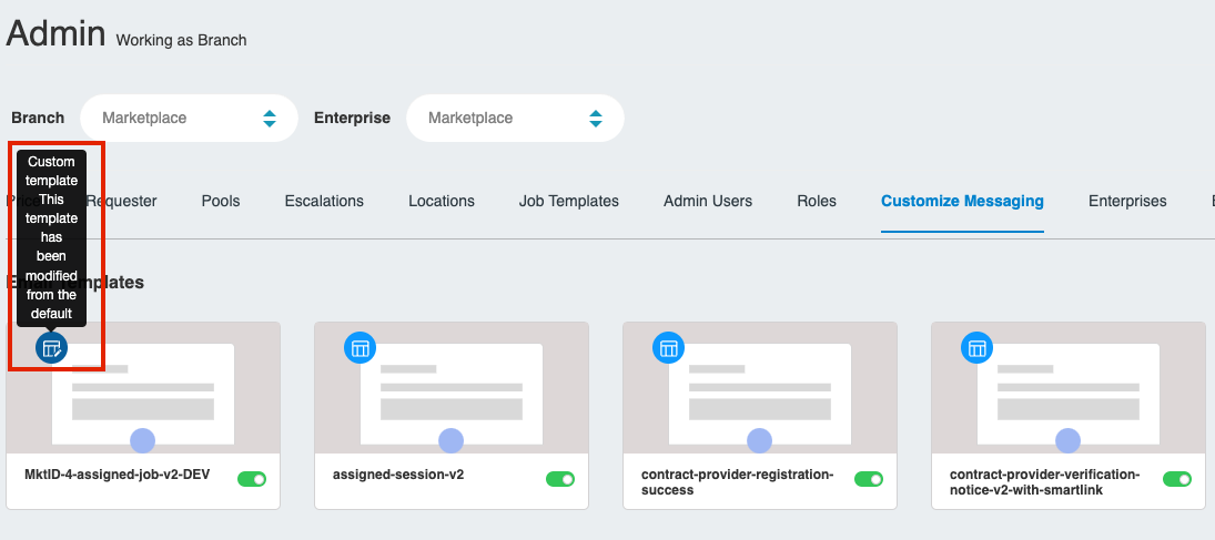 Navigation: Marketplace Level > Admin Tab > Customize Messaging