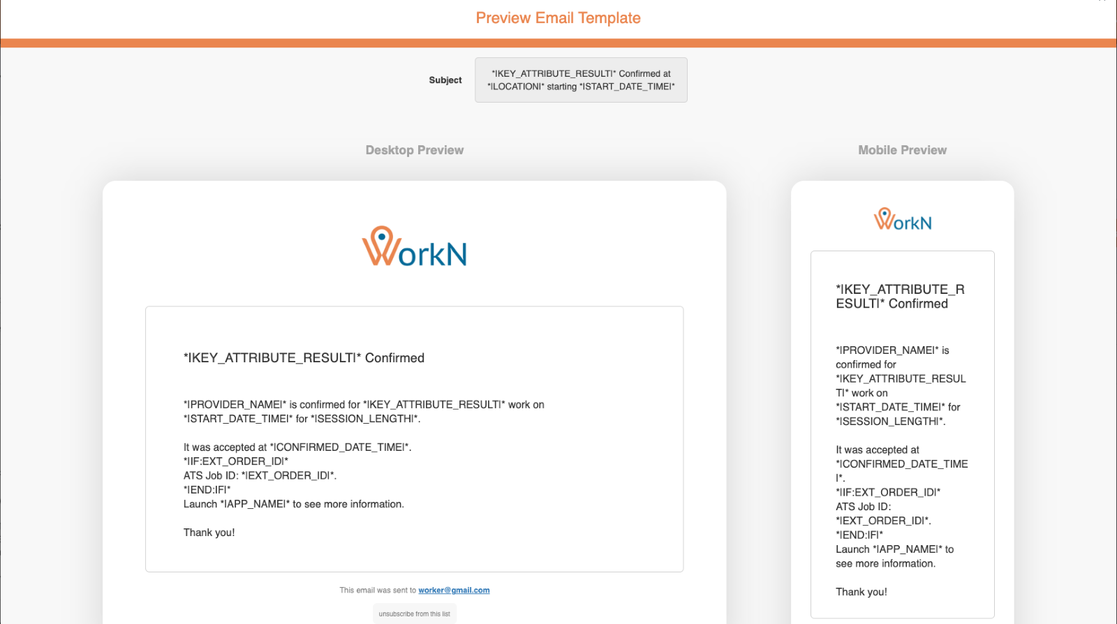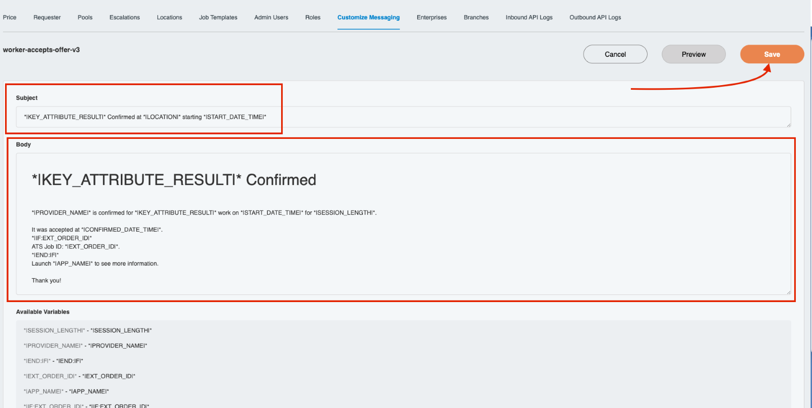 - Save: Once you save the changes, you will be taken to a preview window. Scroll down to confirm your changes. Once confirmed, this new custom template will now be the one used to communicate with your talent.