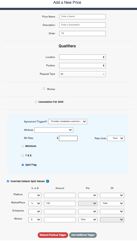 Pricing rules are applied to accepted jobs/shifts based on criteria (Qualifiers) that match the Job Order.