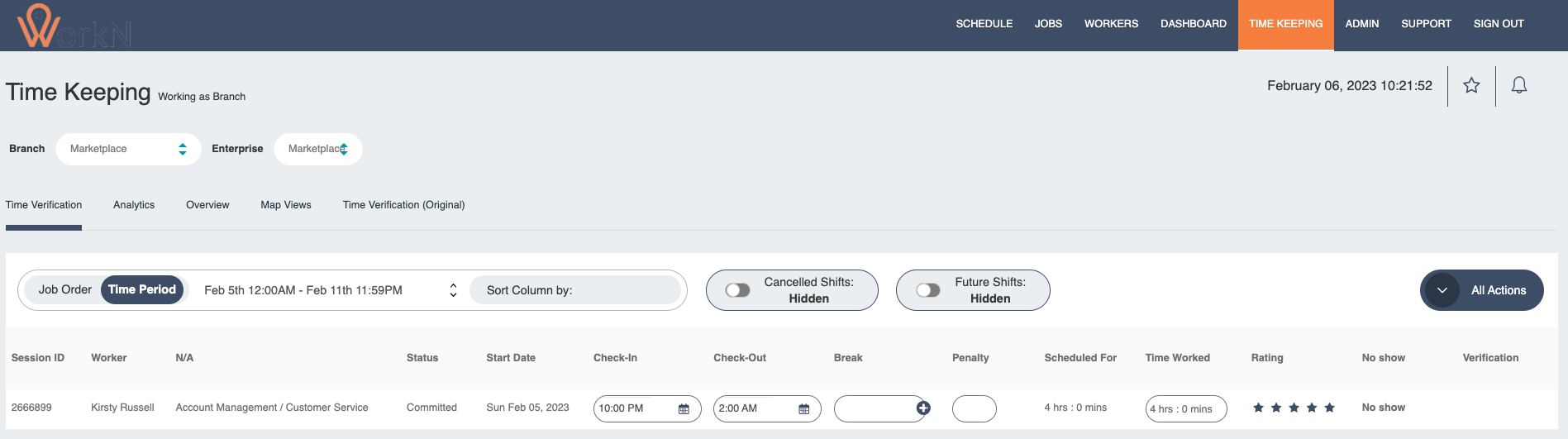 - Allows user to manage time keeping for workers. Reports can also be run for timekeeping for workers. You can rate workers here. Also, user is able to verify and update the workers time if any change is needed