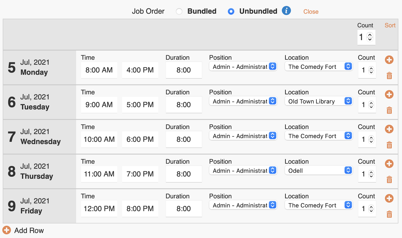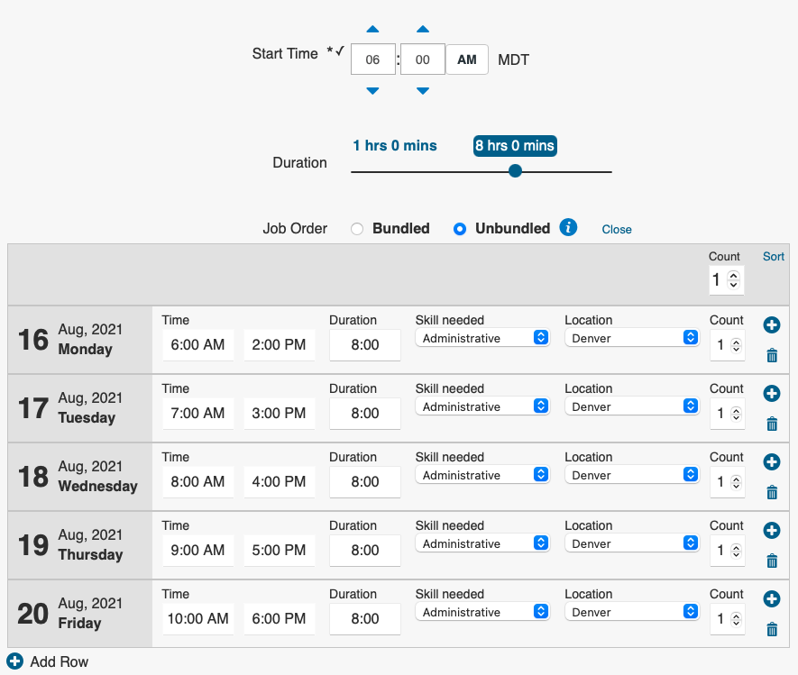 - Unbundled: Multiple people can select individual shifts
