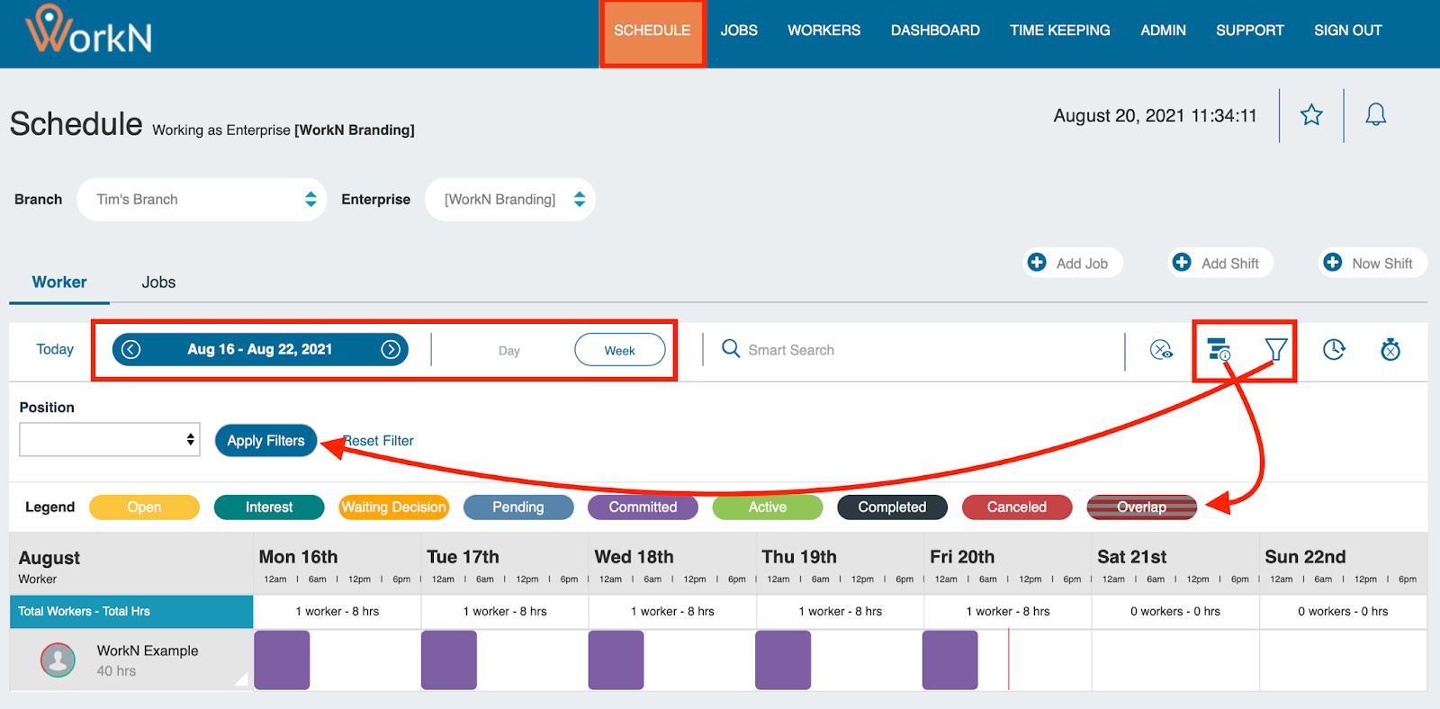 - Offer Jobs: When workers accept these jobs, committed shifts appear in real-time on the schedule