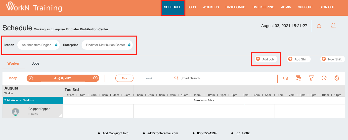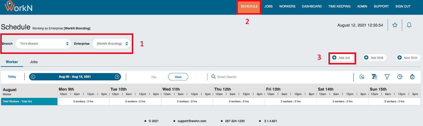 The Schedule feature allows you to view and manage job assignments, track worker responses, and handle shift management at the enterprise level.