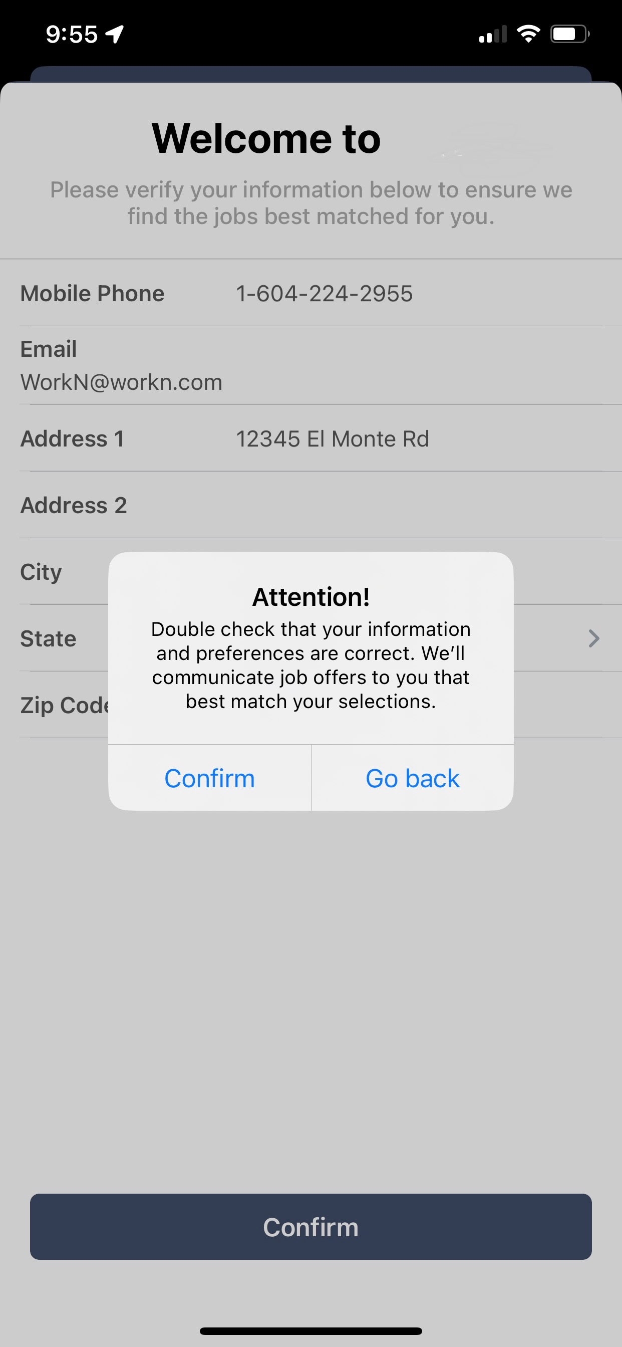Depending on your integration setup, the Welcome Page can also allow WorkN to remove some of the required profile data for talent to receive smart links.