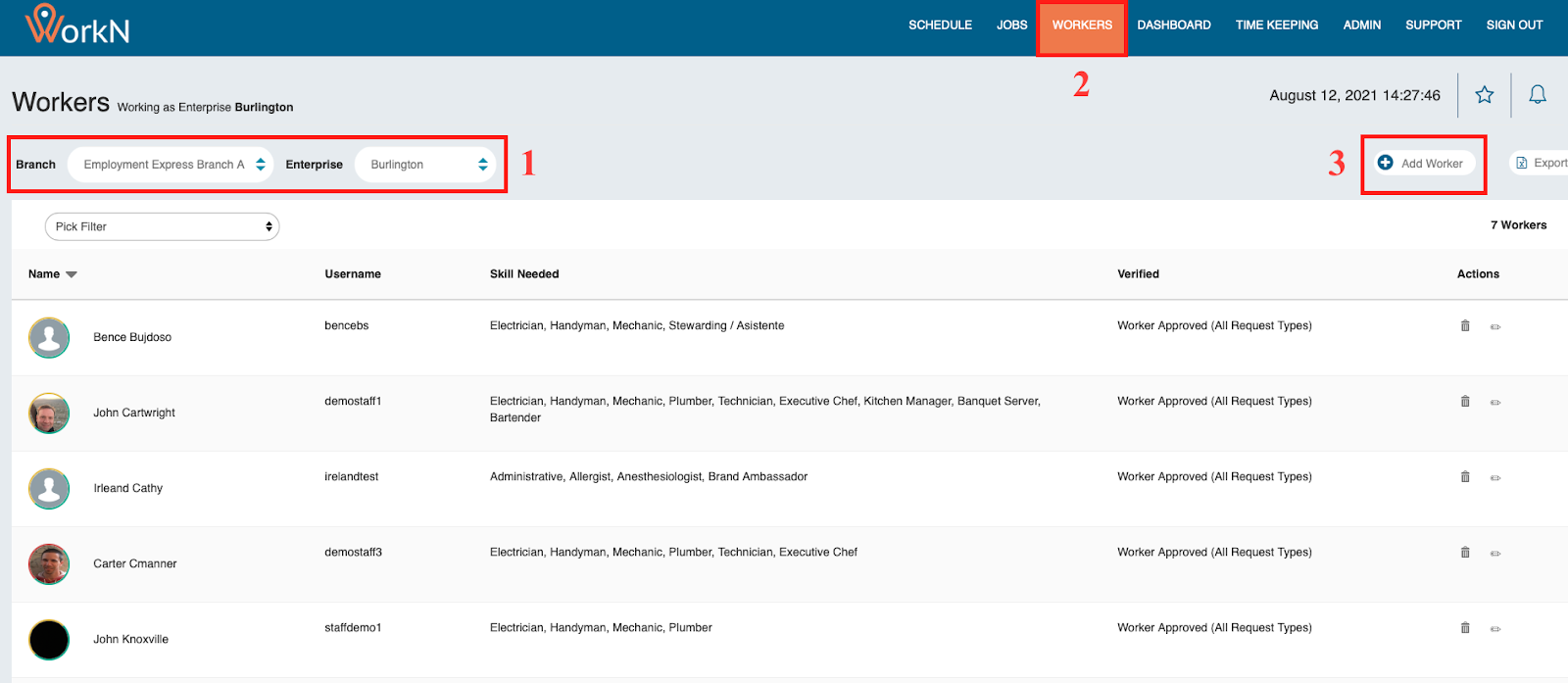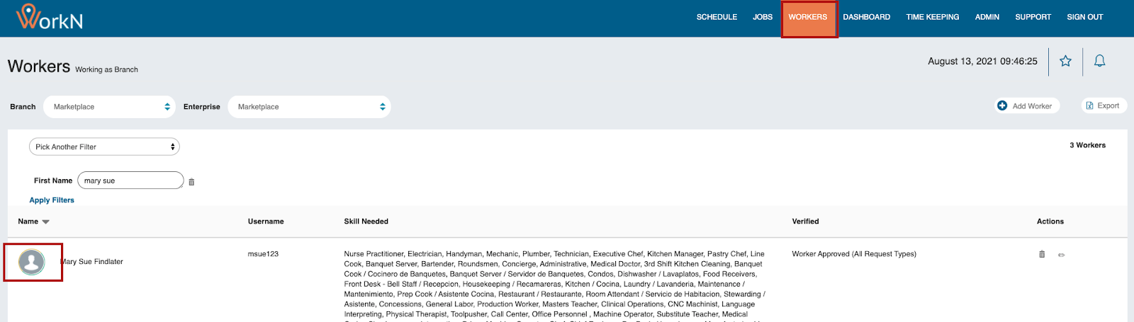 - Click on the circle profile icon of a worker